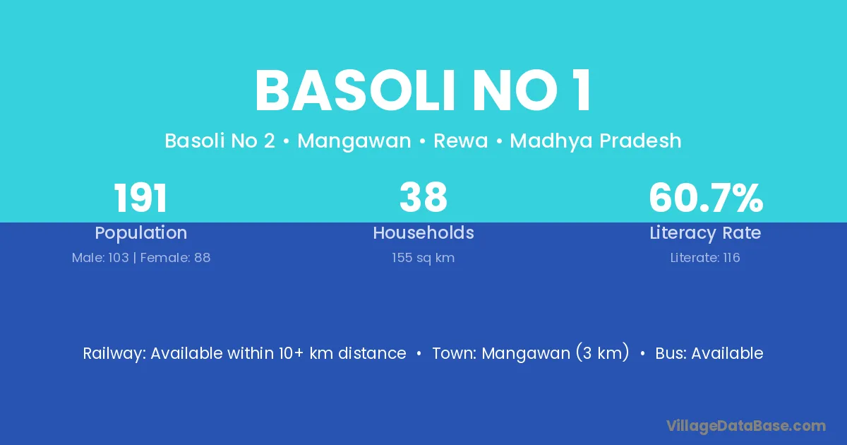 Mangawan (3 km) is the nearest town to Basoli No 1 village for major economic activities and is located approximately 3 km away.