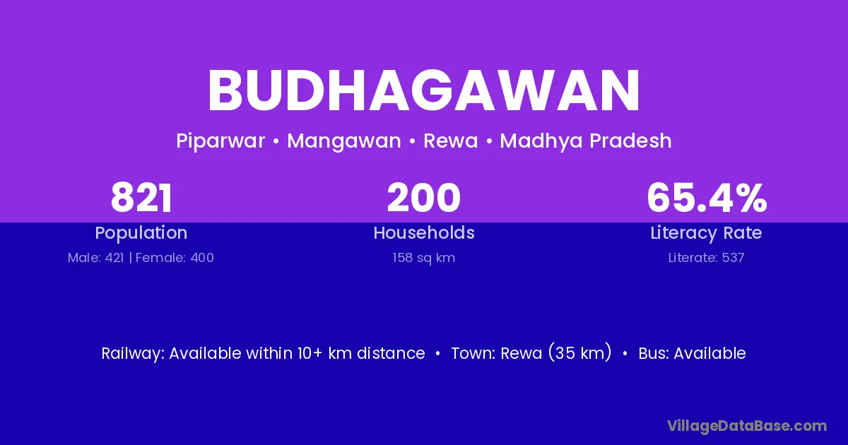 Rewa (35 km) is the nearest town to Budhagawan village for major economic activities and is located approximately 35 km away.