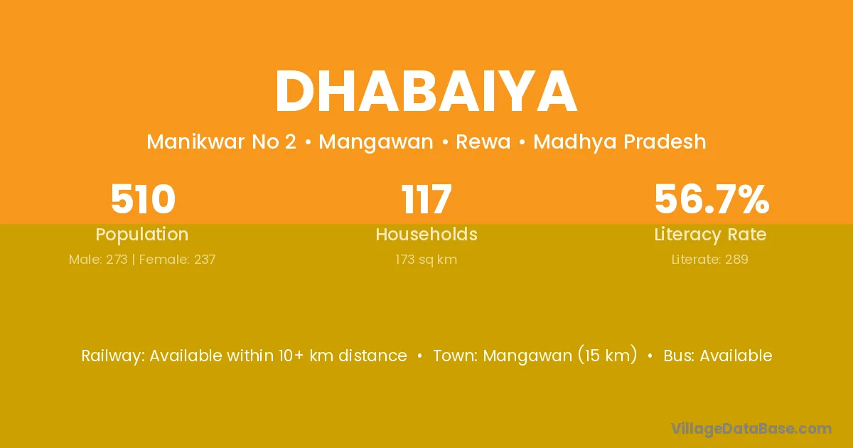 Mangawan (15 km) is the nearest town to Dhabaiya village for major economic activities and is located approximately 15 km away.