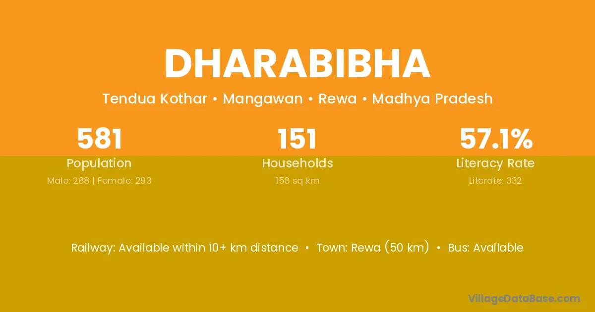Rewa (50 km) is the nearest town to Dharabibha village for major economic activities and is located approximately 50 km away.