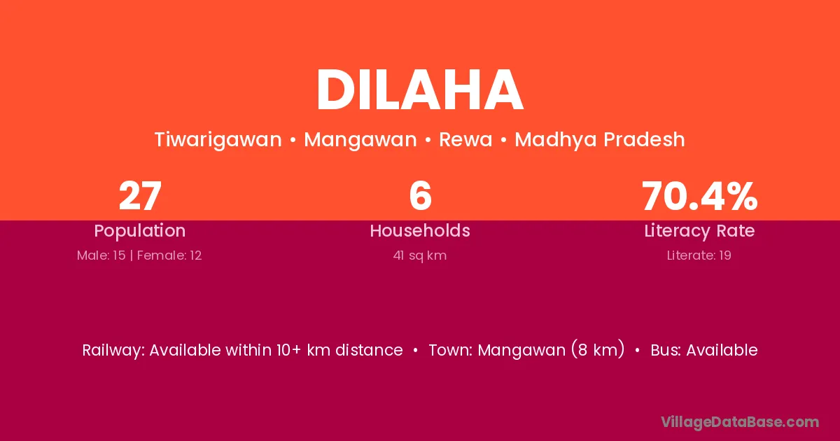 Mangawan (8 km) is the nearest town to Dilaha village for major economic activities and is located approximately 8 km away.