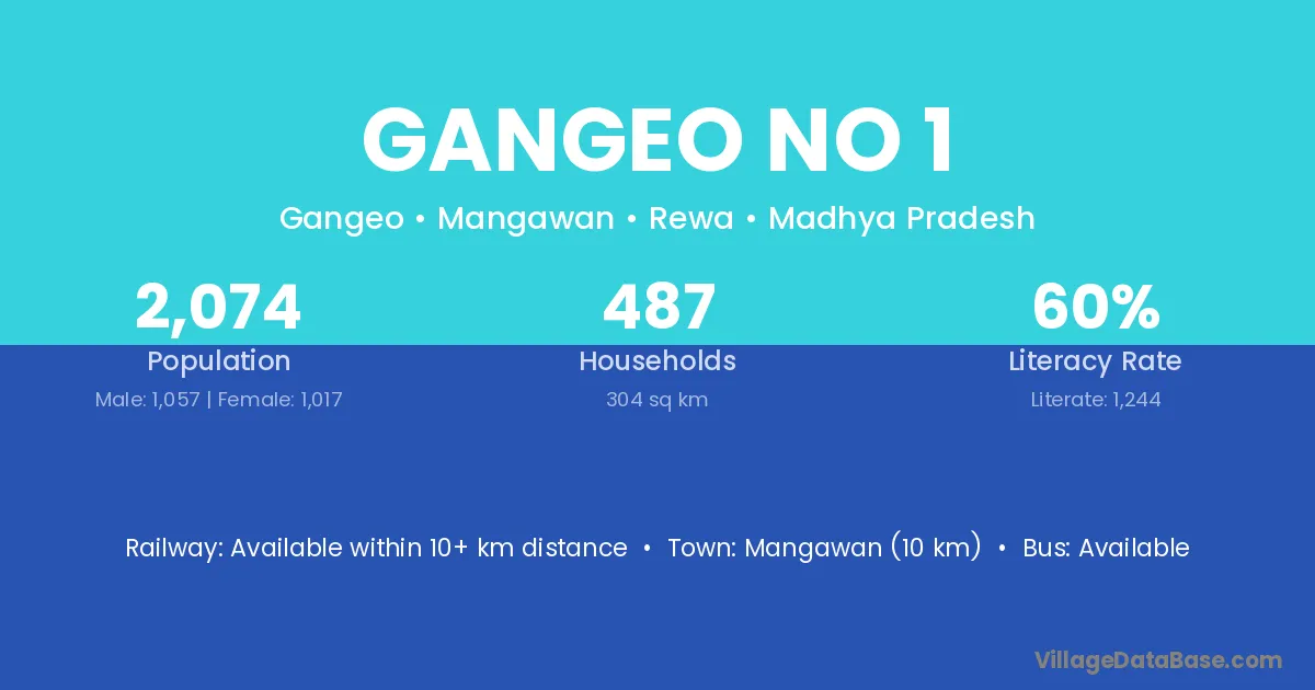 Mangawan (10 km) is the nearest town to Gangeo No 1 village for major economic activities and is located approximately 10 km away.
