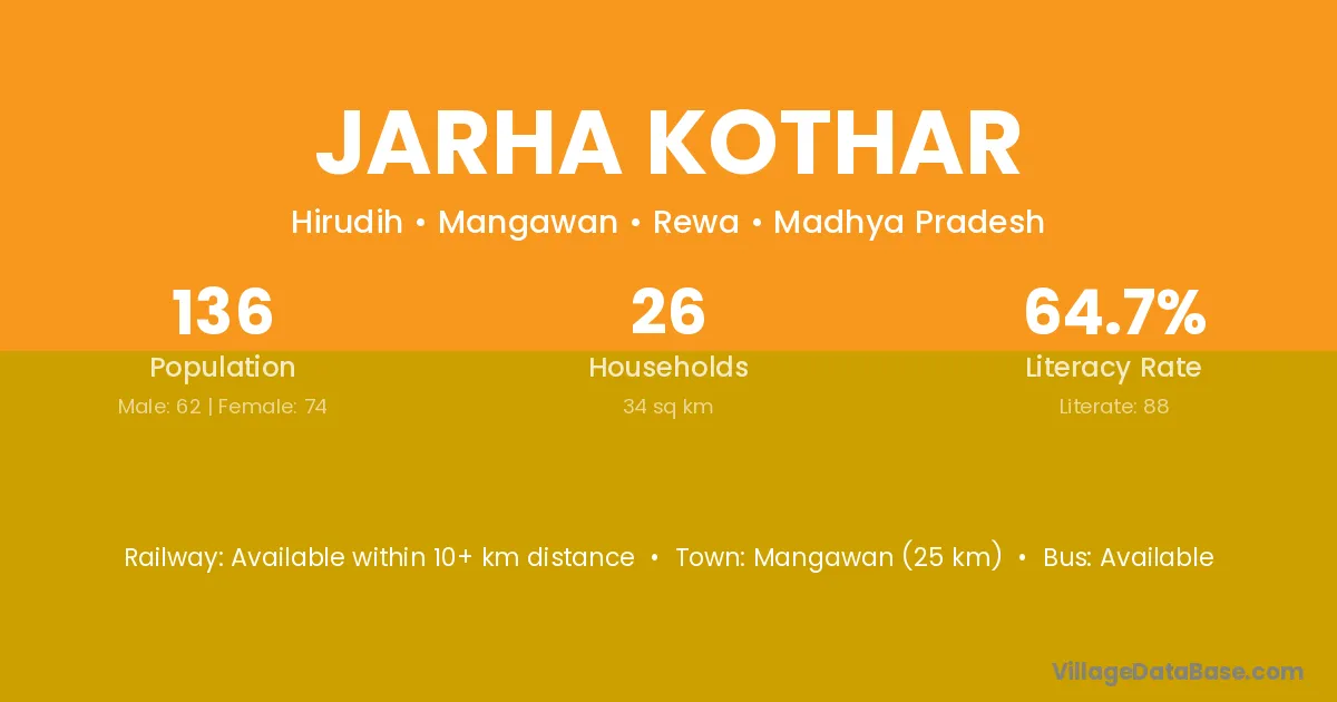Mangawan (25 km) is the nearest town to Jarha Kothar village for major economic activities and is located approximately 25 km away.