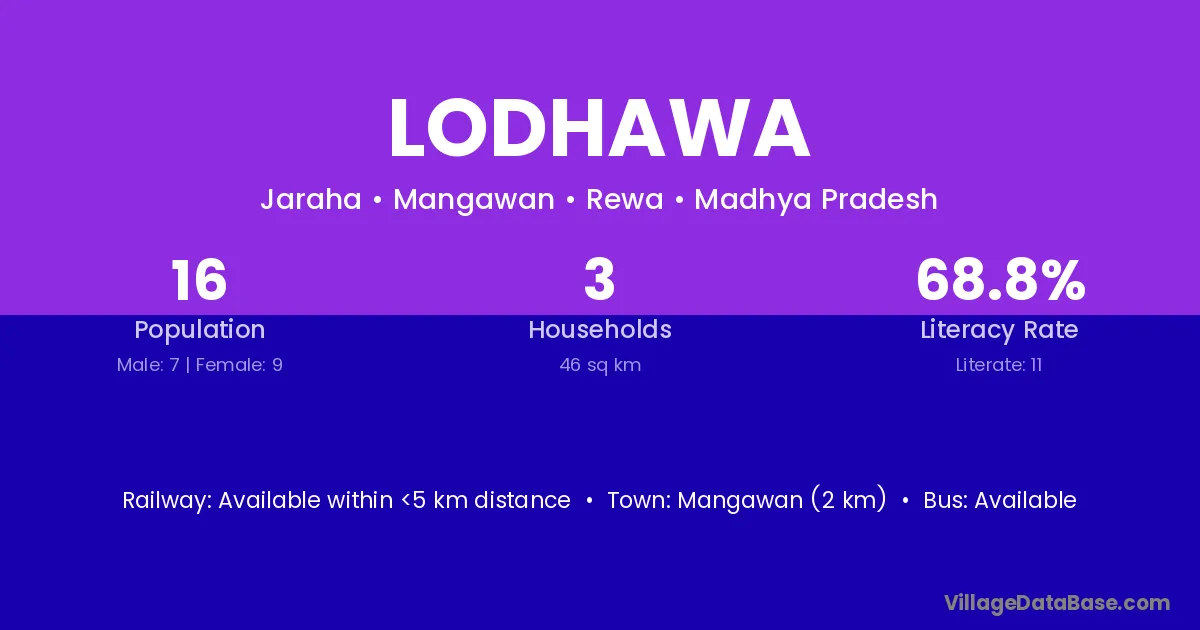 Mangawan (2 km) is the nearest town to Lodhawa village for major economic activities and is located approximately 2 km away.