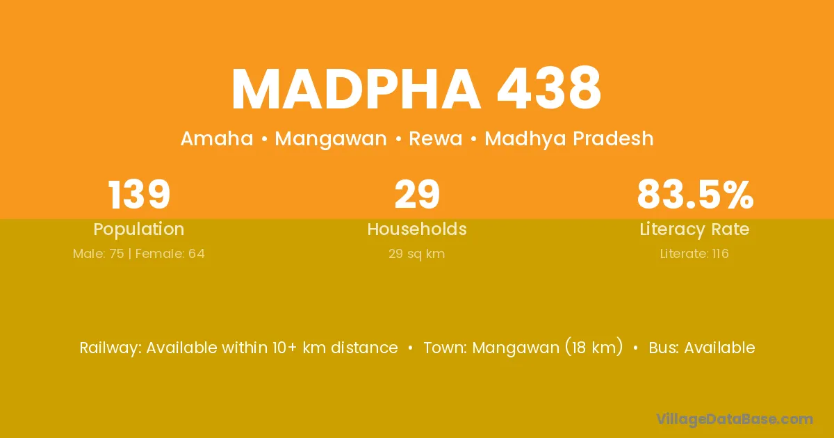 Madpha 438 village has a total population of 139 people, of which 75 are males and 64 are females.
