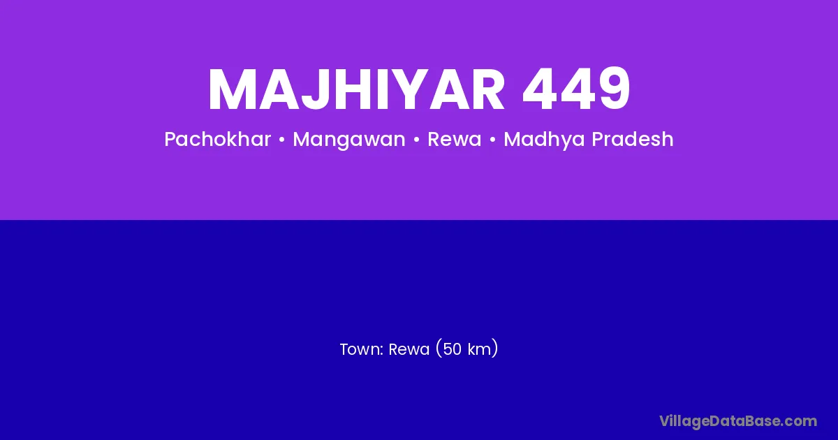 Rewa (50 km) is the nearest town to Majhiyar 449 village for major economic activities and is located approximately 50 km away.