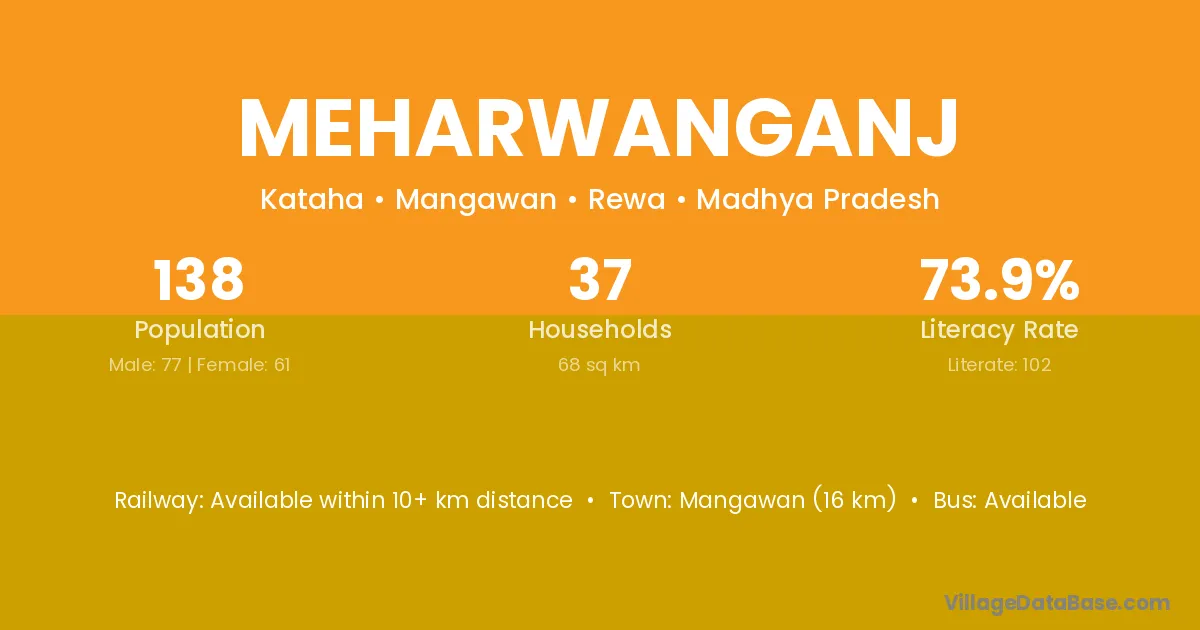 Mangawan (16 km) is the nearest town to Meharwanganj village for major economic activities and is located approximately 16 km away.