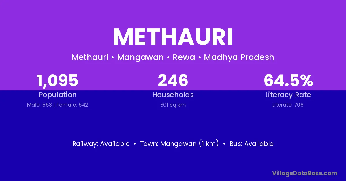 Mangawan (1 km) is the nearest town to Methauri village for major economic activities and is located approximately 1 km away.