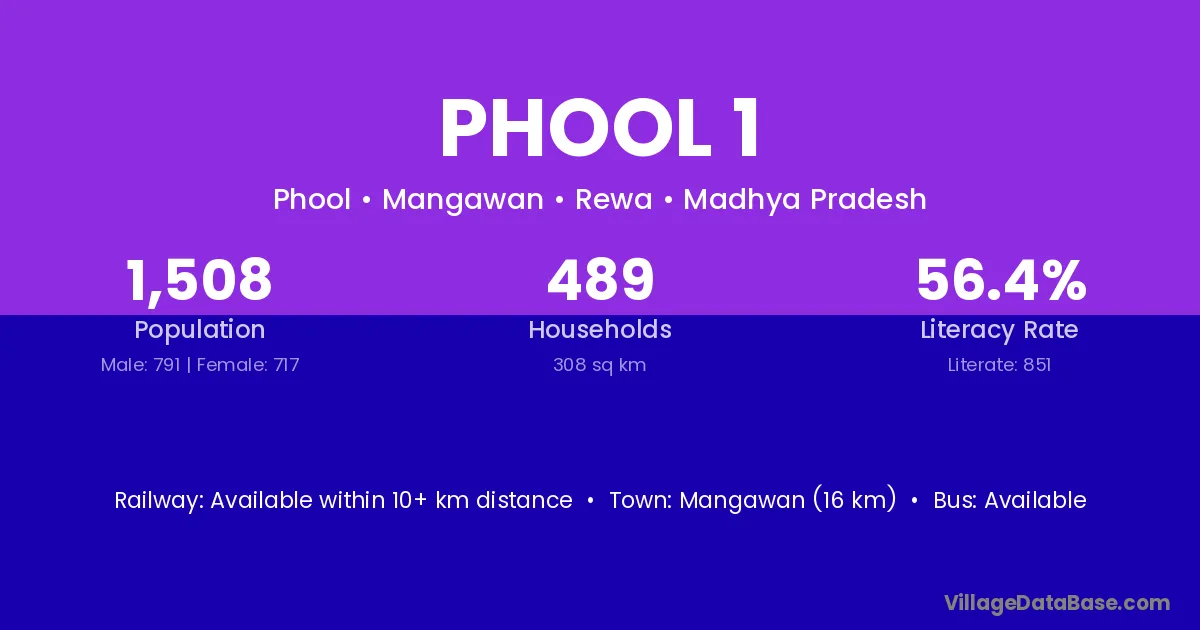 Mangawan (16 km) is the nearest town to Phool 1 village for major economic activities and is located approximately 16 km away.