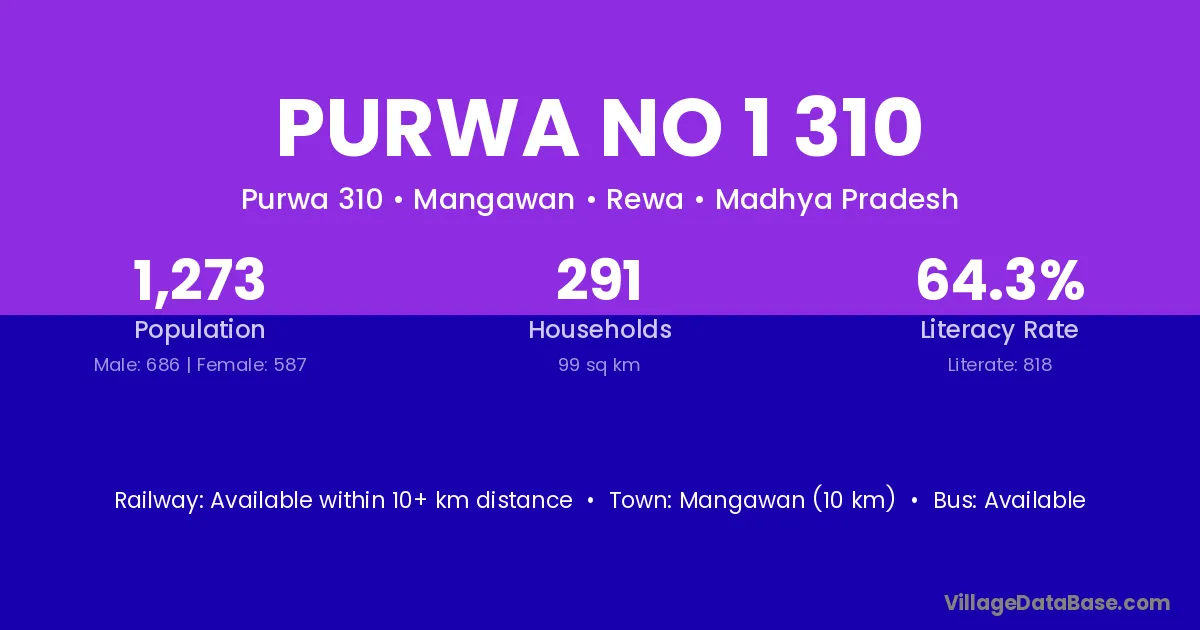 There are approximately 291 households in Purwa No 1 310 village.