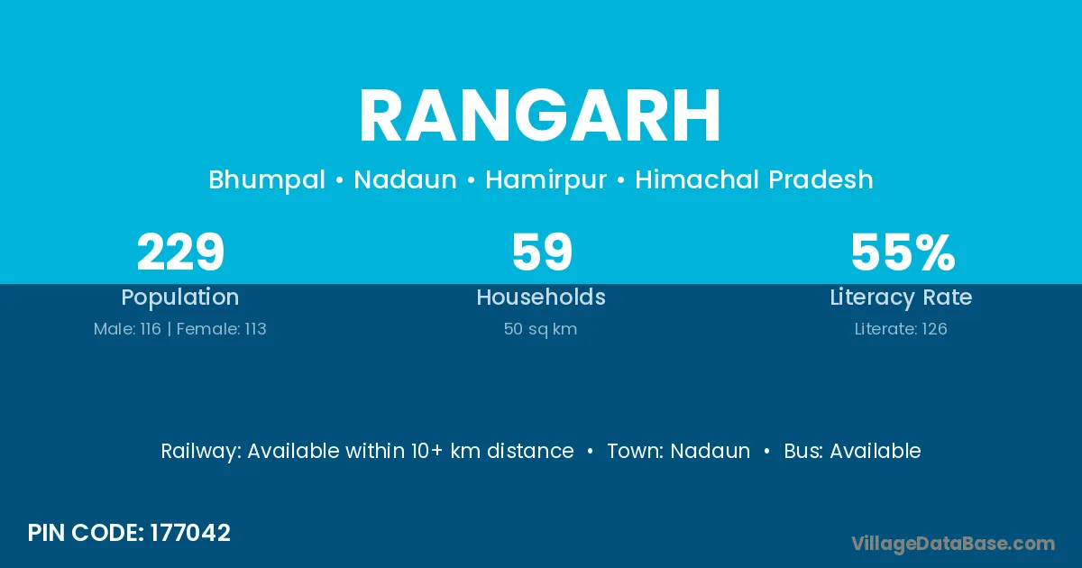 Rewa (60 km) is the nearest town to Rangarh village for major economic activities and is located approximately 60 km away.