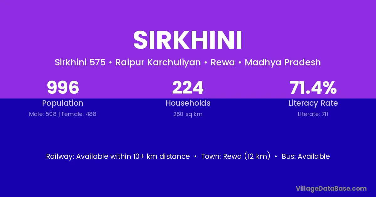 Mangawan (5 km) is the nearest town to Sirkhini village for major economic activities and is located approximately 5 km away.