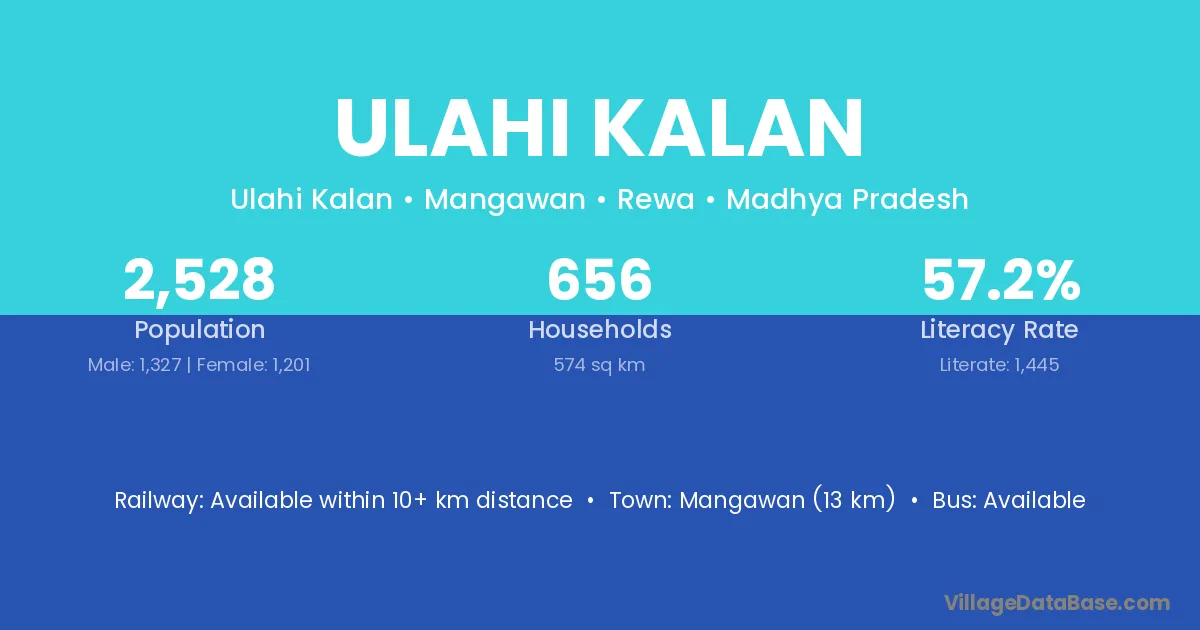 Mangawan (13 km) is the nearest town to Ulahi Kalan village for major economic activities and is located approximately 13 km away.