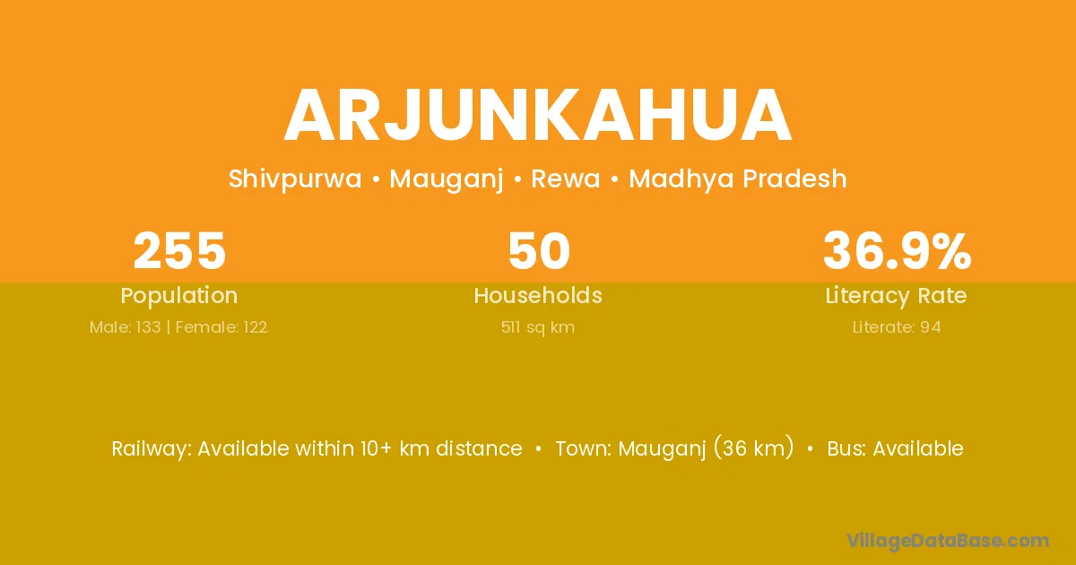 Mauganj (36 km) is the nearest town to Arjunkahua village for major economic activities and is located approximately 36 km away.