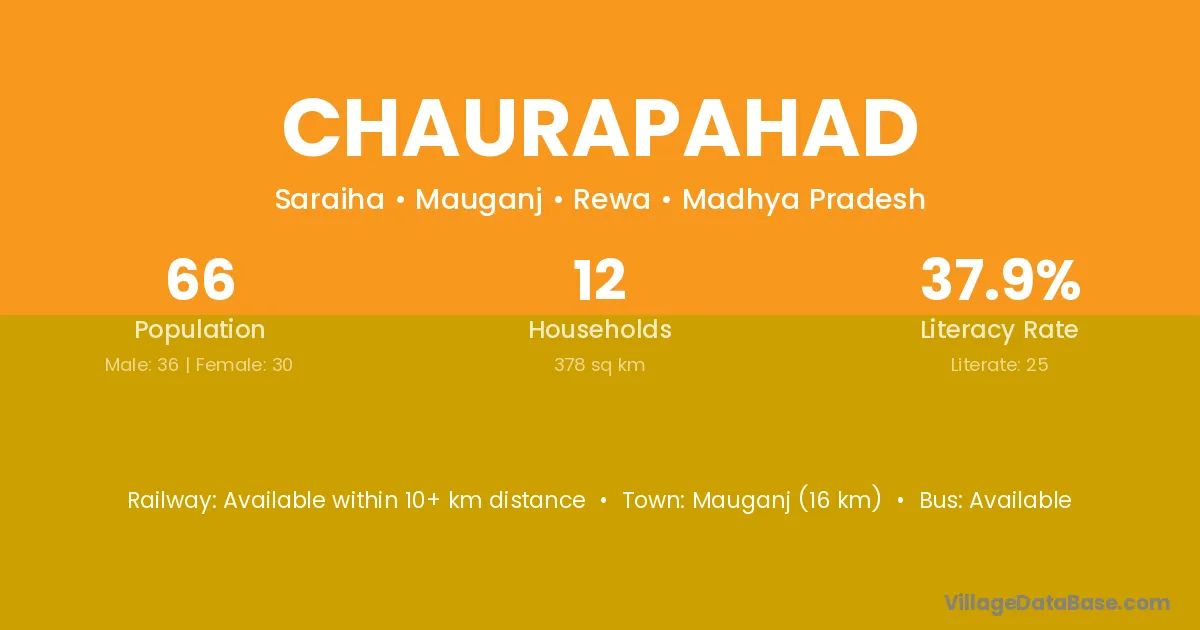 Mauganj (16 km) is the nearest town to Chaurapahad village for major economic activities and is located approximately 16 km away.