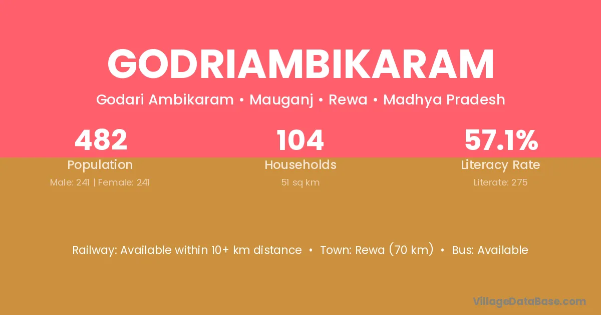 Rewa (70 km) is the nearest town to Godriambikaram village for major economic activities and is located approximately 70 km away.