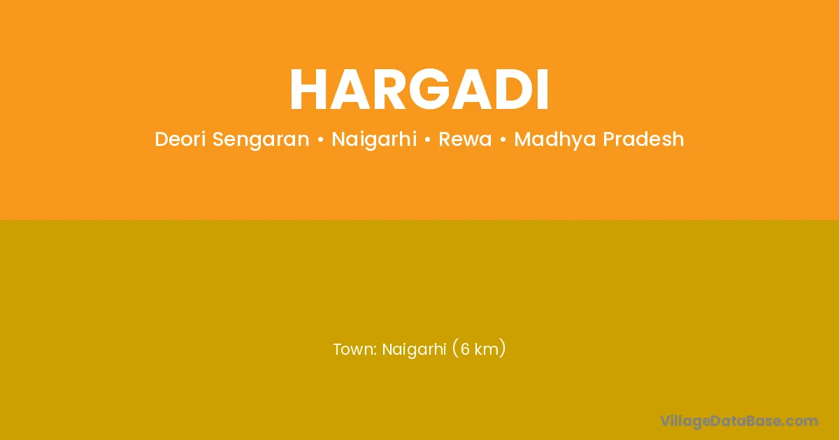 Rewa (60 km) is the nearest town to Hargadi village for major economic activities and is located approximately 60 km away.