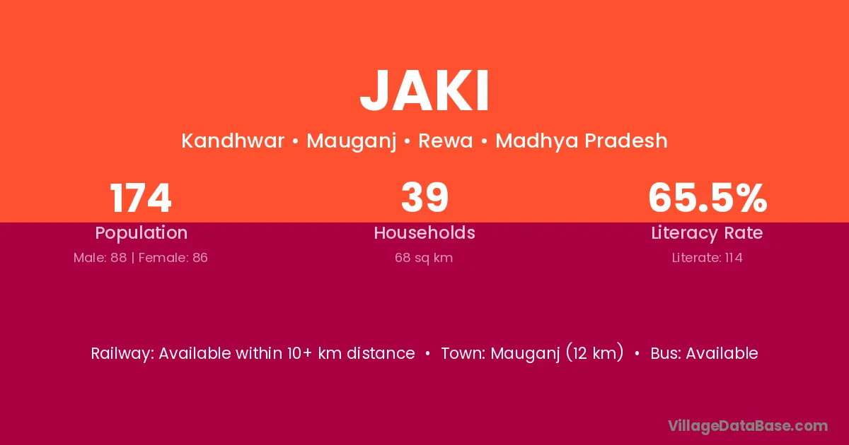 Mauganj (12 km) is the nearest town to Jaki village for major economic activities and is located approximately 12 km away.