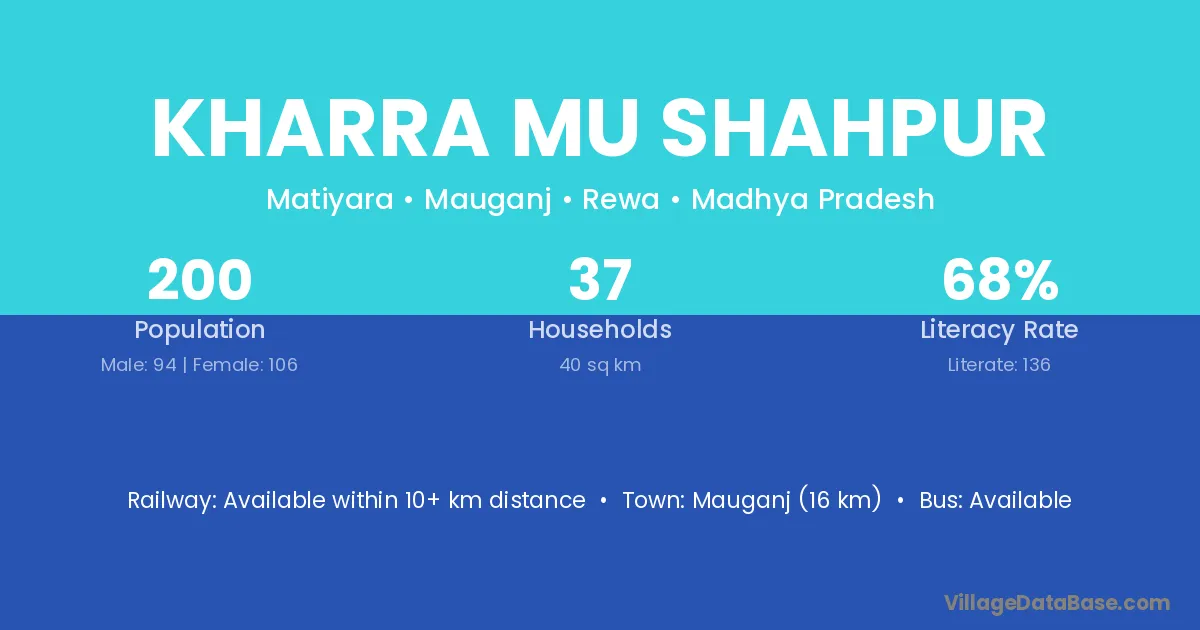 Mauganj (16 km) is the nearest town to Kharra Mu Shahpur village for major economic activities and is located approximately 16 km away.