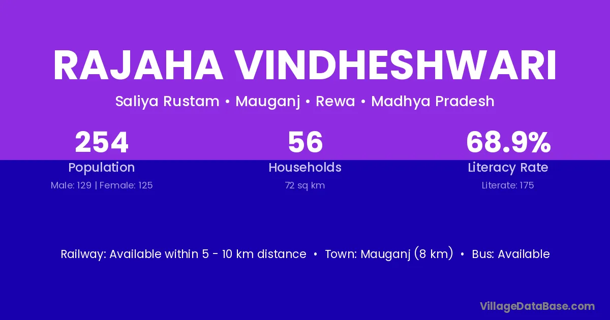 Mauganj (8 km) is the nearest town to Rajaha Vindheshwari village for major economic activities and is located approximately 8 km away.