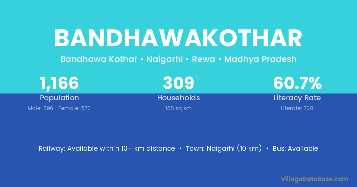 Bandhawakothar village has a total population of 1,166 people, of which 596 are males and 570 are females.
