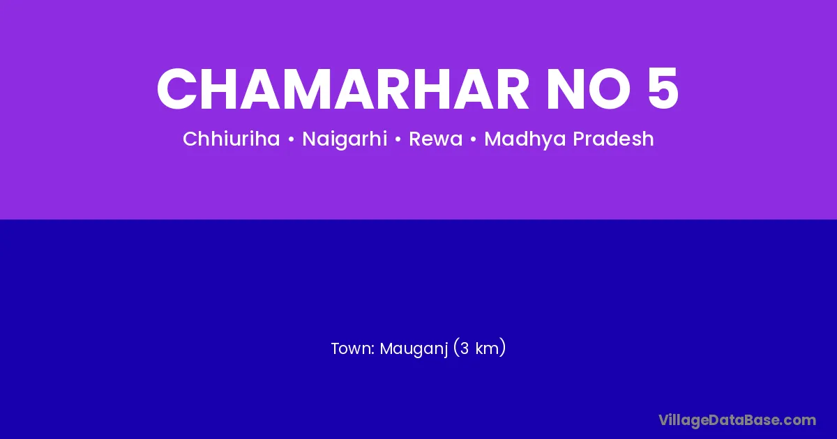 Mauganj (3 km) is the nearest town to Chamarhar No 5 village for major economic activities and is located approximately 3 km away.