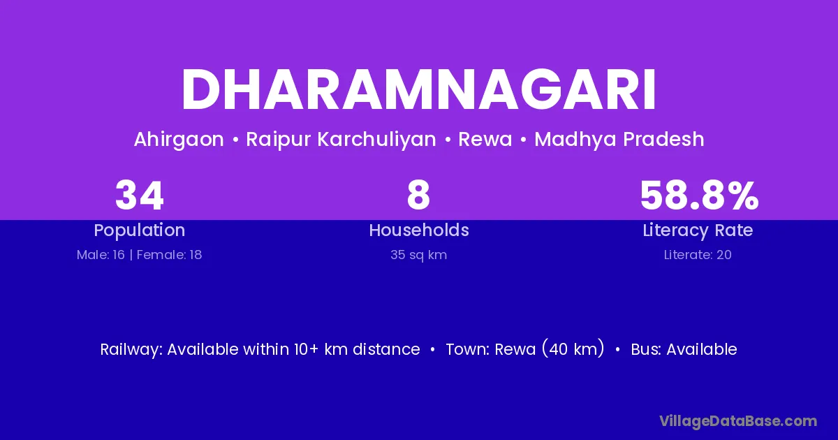 Naigarhi (20 km) is the nearest town to Dharamnagari village for major economic activities and is located approximately 20 km away.