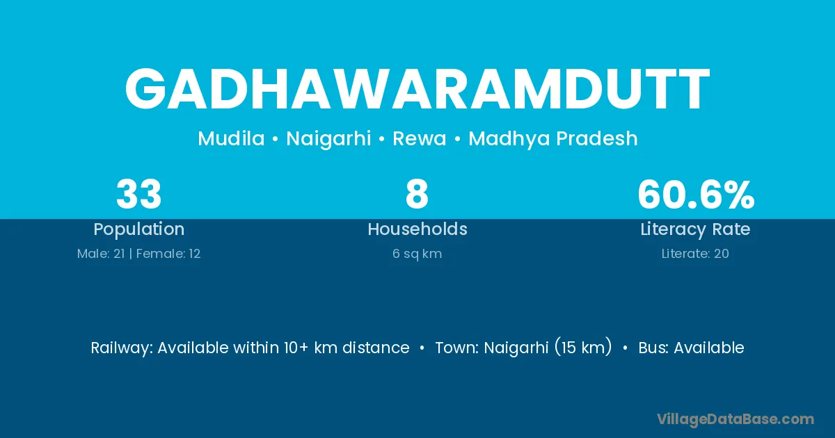Gadhawaramdutt village has a total population of 33 people, of which 21 are males and 12 are females.