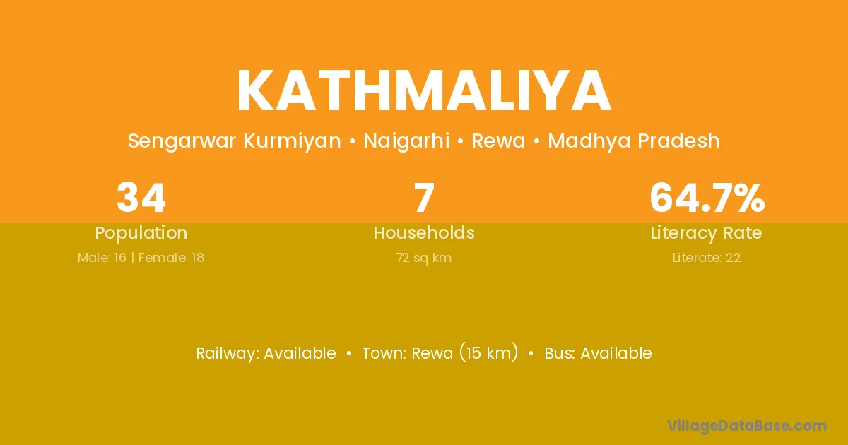 Rewa (15 km) is the nearest town to Kathmaliya village for major economic activities and is located approximately 15 km away.