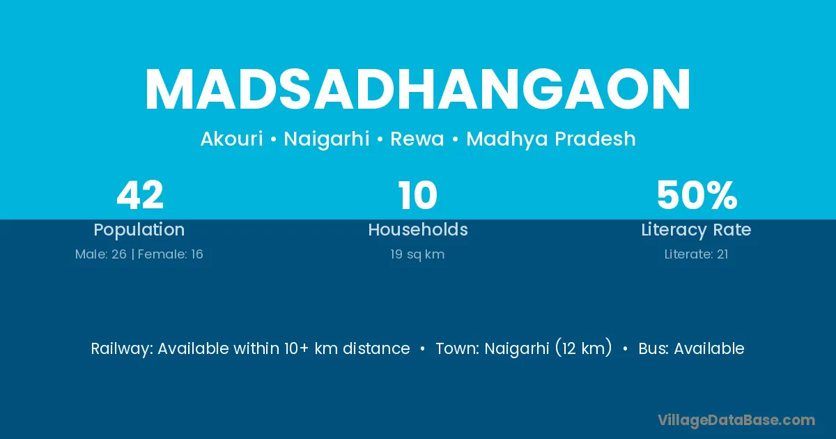 Naigarhi (12 km) is the nearest town to Madsadhangaon village for major economic activities and is located approximately 12 km away.