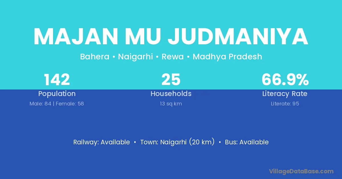 Majan Mu Judmaniya village has a total population of 142 people, of which 84 are males and 58 are females.