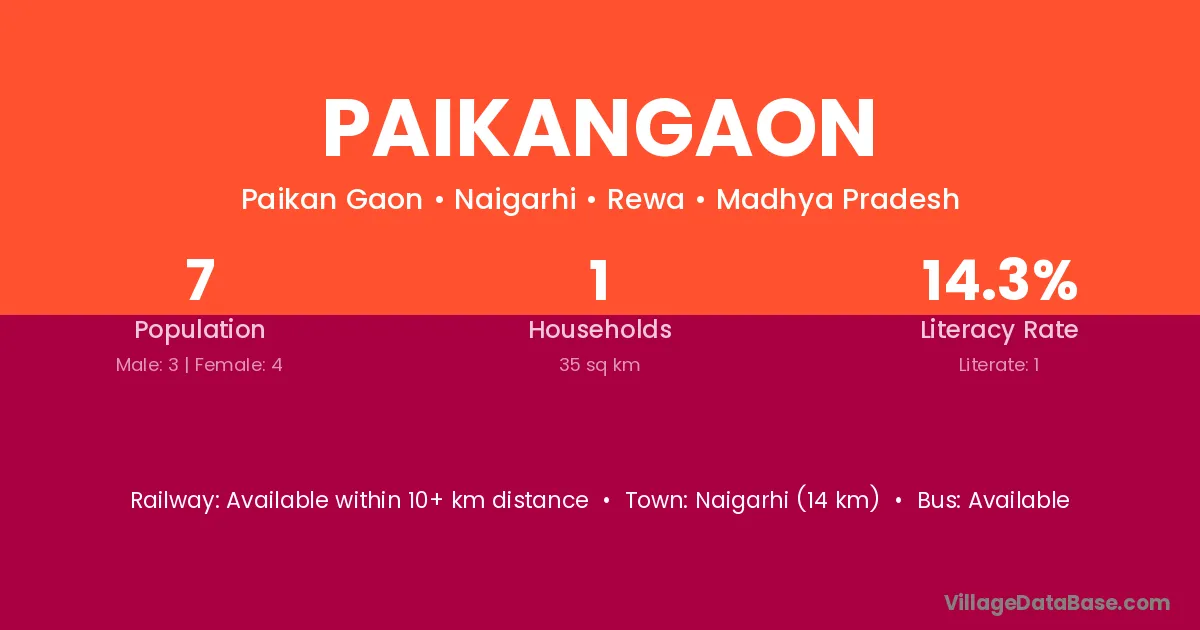 Paikangaon village has a total population of 7 people, of which 3 are males and 4 are females.