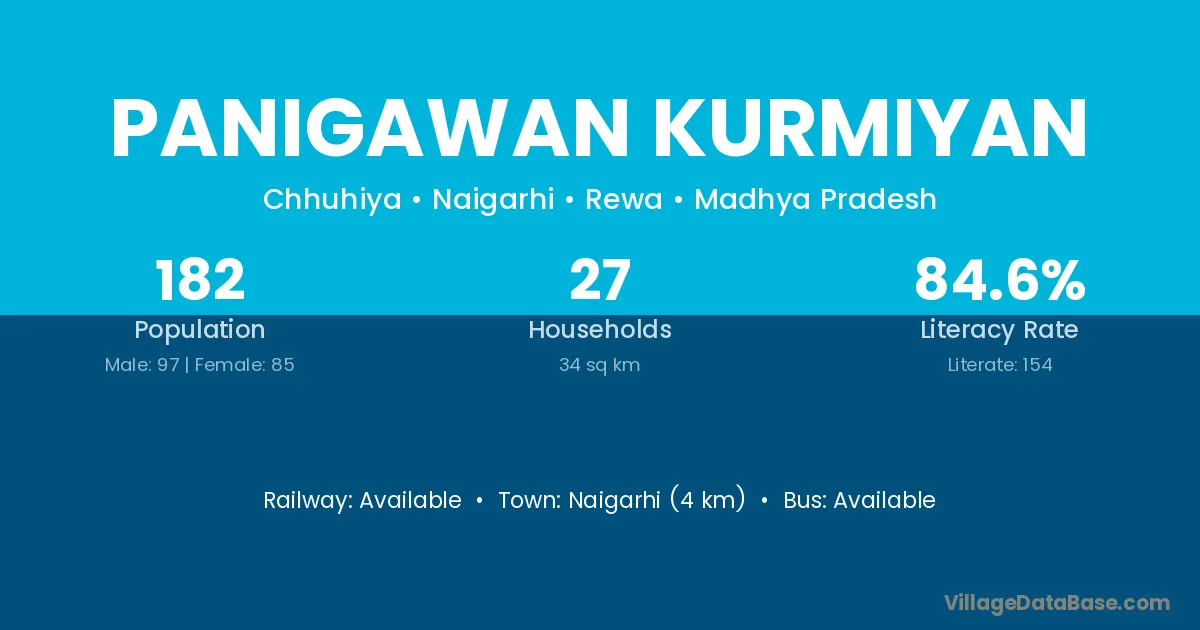 Panigawan Kurmiyan village has a total population of 182 people, of which 97 are males and 85 are females.