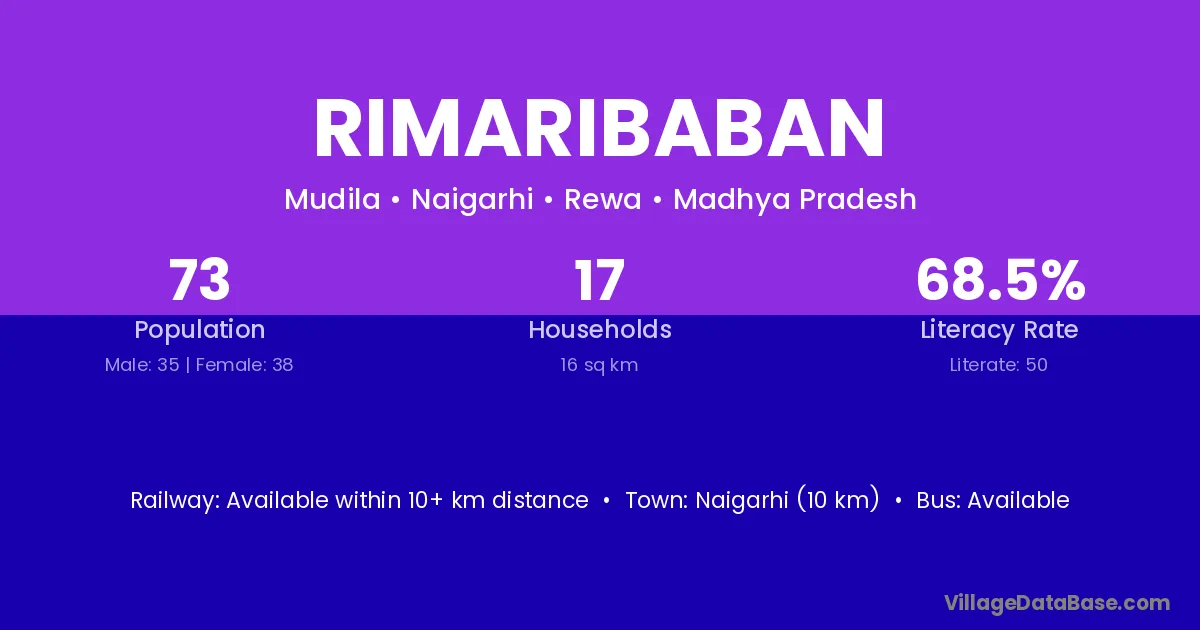Rimaribaban village has a total population of 73 people, of which 35 are males and 38 are females.