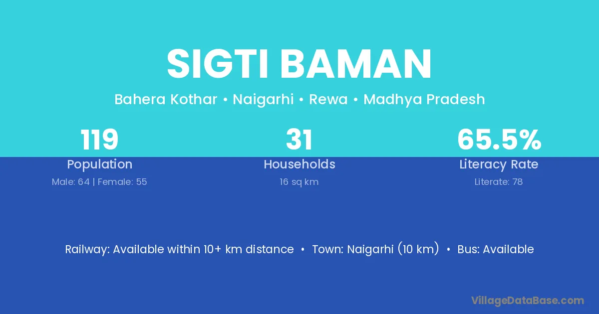 Sigti Baman village has a total population of 119 people, of which 64 are males and 55 are females.