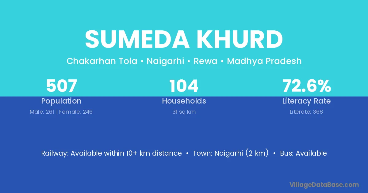 Sumeda Khurd village has a total population of 507 people, of which 261 are males and 246 are females.