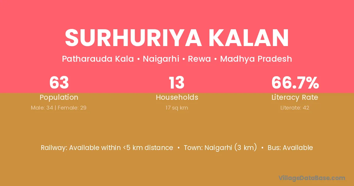 Naigarhi (3 km) is the nearest town to Surhuriya Kalan village for major economic activities and is located approximately 3 km away.