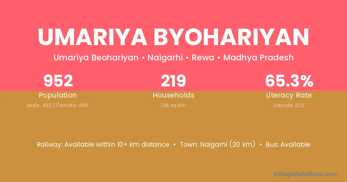 Umariya Byohariyan village has a total population of 952 people, of which 492 are males and 460 are females.