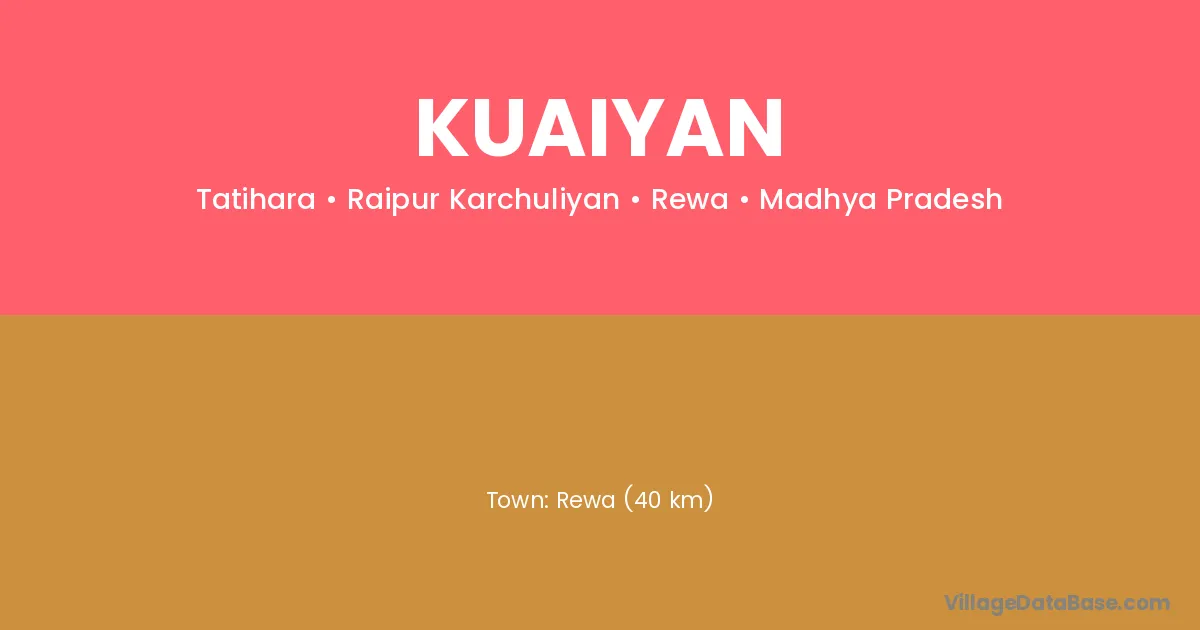 Rewa (40 km) is the nearest town to Kuaiyan village for major economic activities and is located approximately 40 km away.