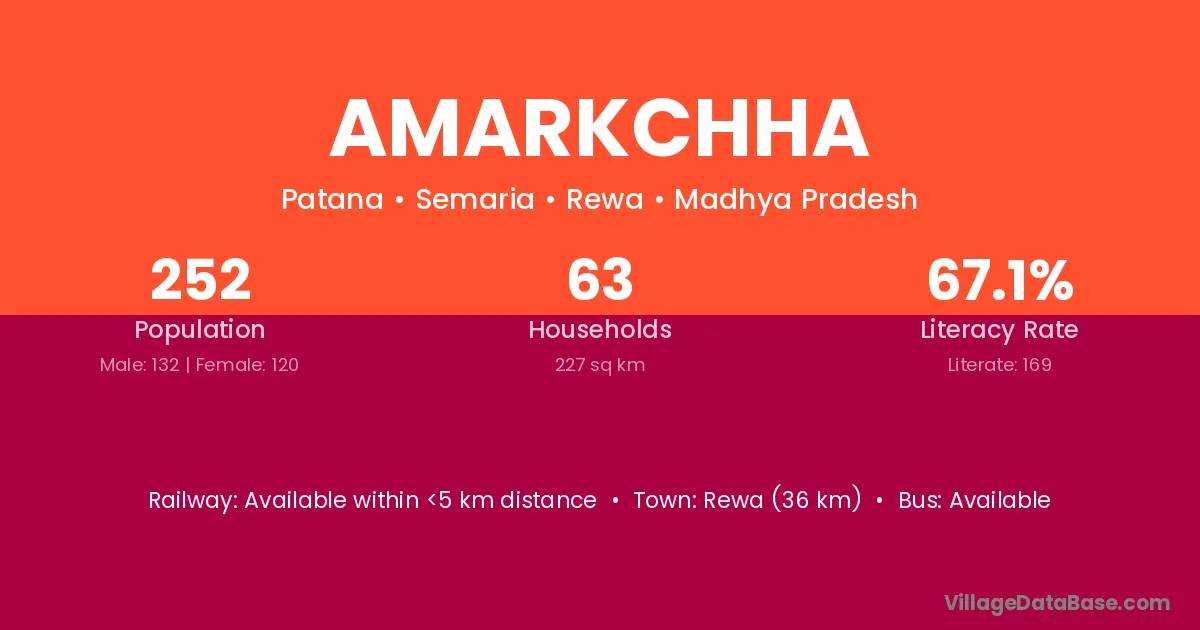 Rewa (36 km) is the nearest town to Amarkchha village for major economic activities and is located approximately 36 km away.