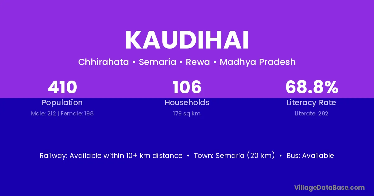 Semaria (20 km) is the nearest town to Kaudihai village for major economic activities and is located approximately 20 km away.