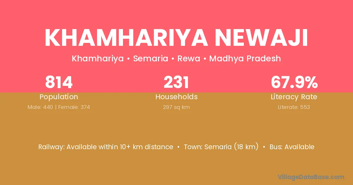 Khamhariya Newaji village has a total population of 814 people, of which 440 are males and 374 are females.