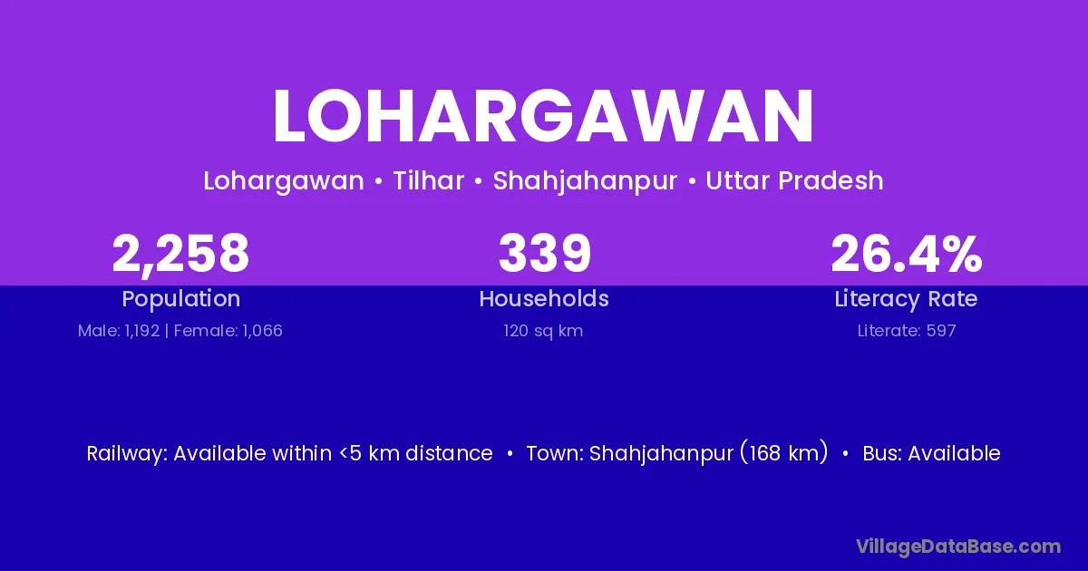 Semaria (18 km) is the nearest town to Lohargawan village for major economic activities and is located approximately 18 km away.