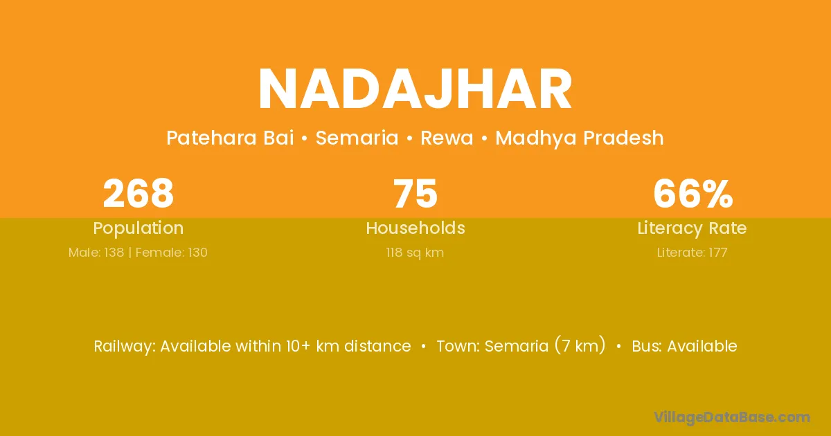 Semaria (7 km) is the nearest town to Nadajhar village for major economic activities and is located approximately 7 km away.