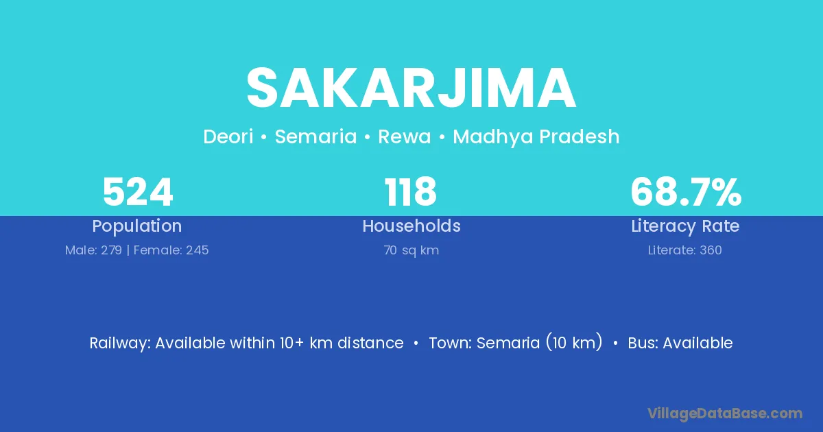 Sakarjima village has a total population of 524 people, of which 279 are males and 245 are females.