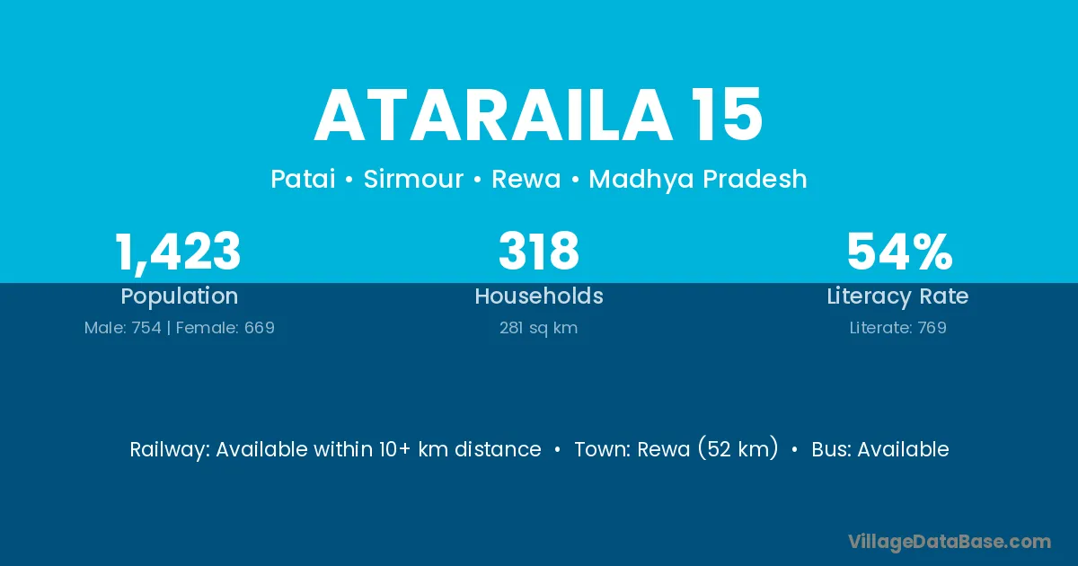 Rewa (52 km) is the nearest town to Ataraila 15 village for major economic activities and is located approximately 52 km away.