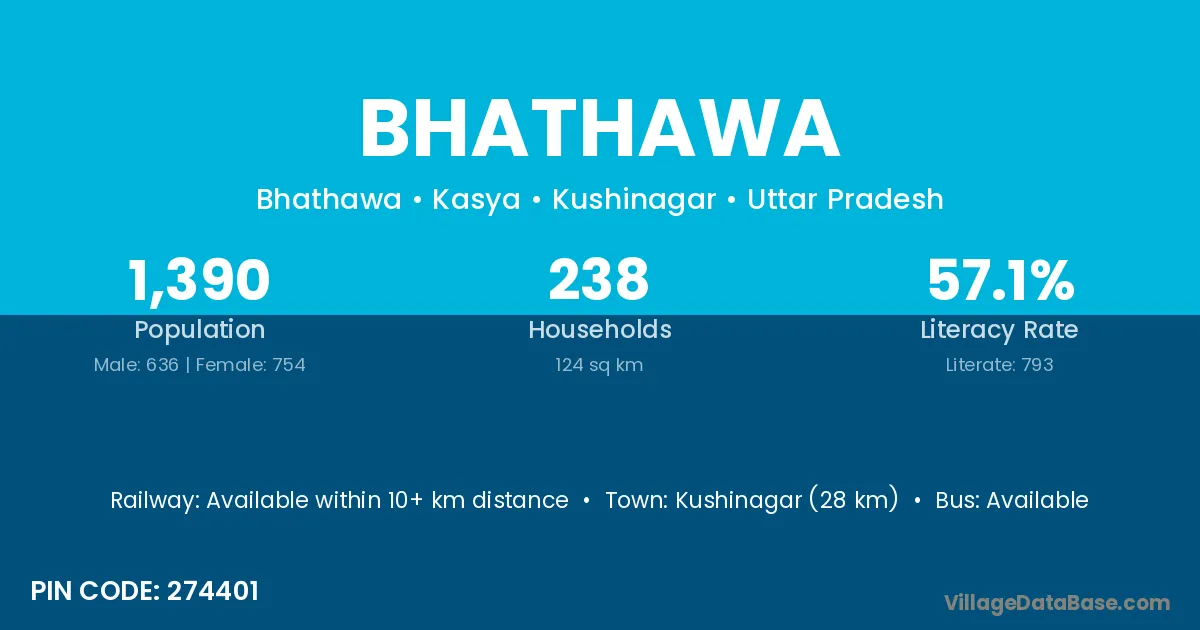 The literacy rate of Bhathawa village is 63.60%. Male literacy stands at 68.12% and female literacy at 58.54%.