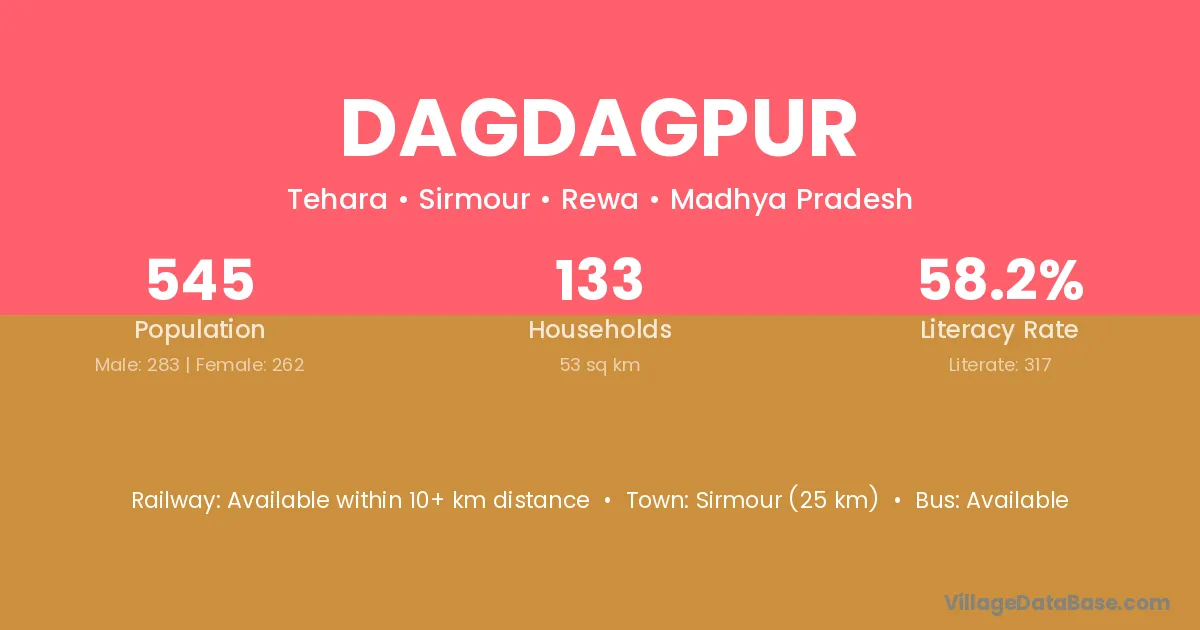 Dagdagpur village has a total population of 545 people, of which 283 are males and 262 are females.