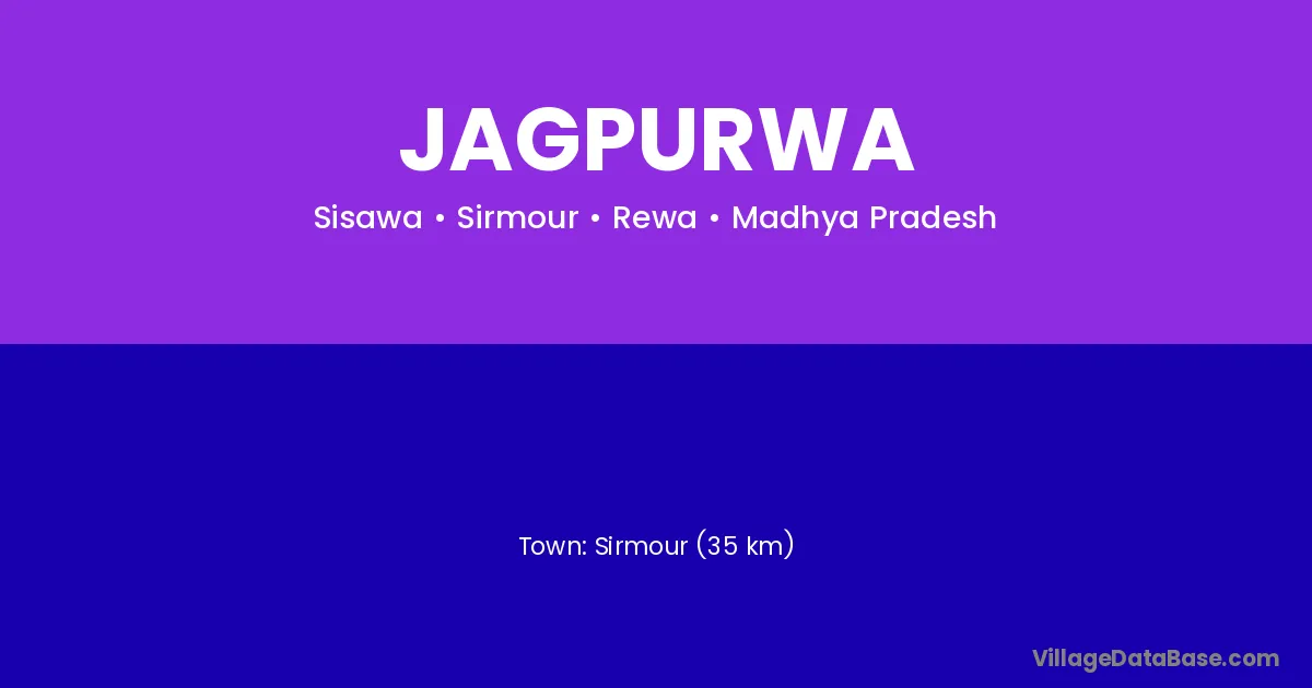Sirmour (35 km) is the nearest town to Jagpurwa village for major economic activities and is located approximately 35 km away.