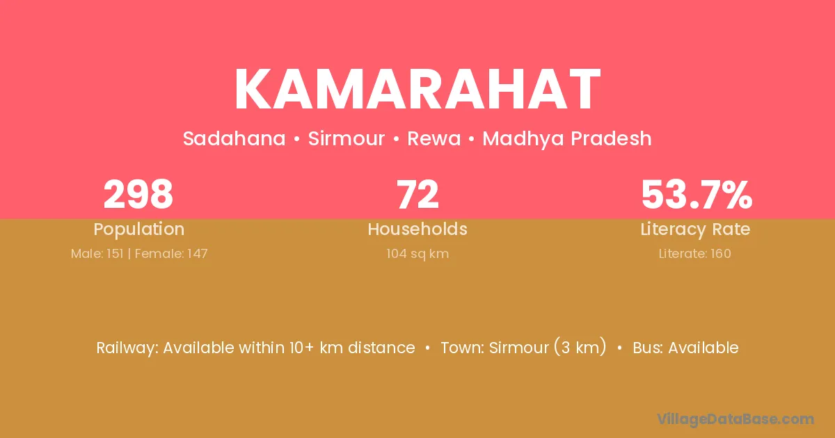 Kamarahat village has a total population of 298 people, of which 151 are males and 147 are females.